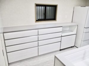 背面にはウォールキャビネット(収納ユニット)を新しく設置しました。