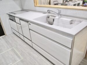 今回のリフォームでは、機能的なシステムキッチンの導入だけでなく、床・壁までトータルで一新。見た目も使い勝手も、そして“家族の距離”までもが見違えるように変わりました。