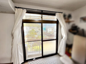 今回は、呉市広にお住まいのお客様よりご依頼をいただき、出窓と掃き出し窓に内窓を取り付けさせていただきました。