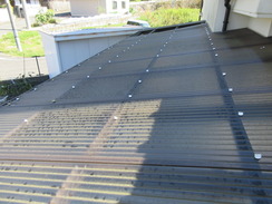 新しいポリカ波板を専用のフックで固定し貼り替えが完了しました。