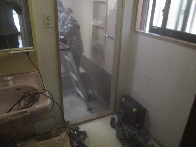 既存浴室解体 既存浴槽、壁、床、出入口壁などを撤去処分します。窓は、そのまま使用します。