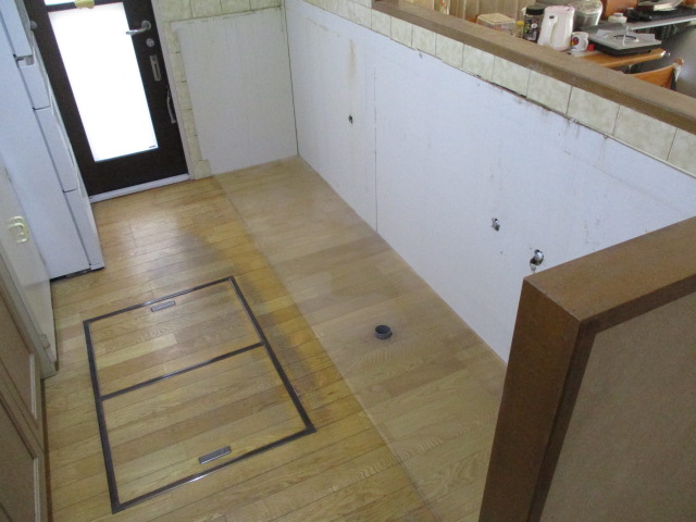 キッチン撤去 IHコンロを設置する為、既存ガス配管等を止め、撤去しました。