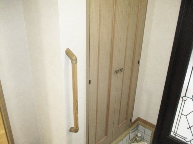 完成 浴室出入口に手摺りを設置→浴室乾燥暖房機も取付けました。