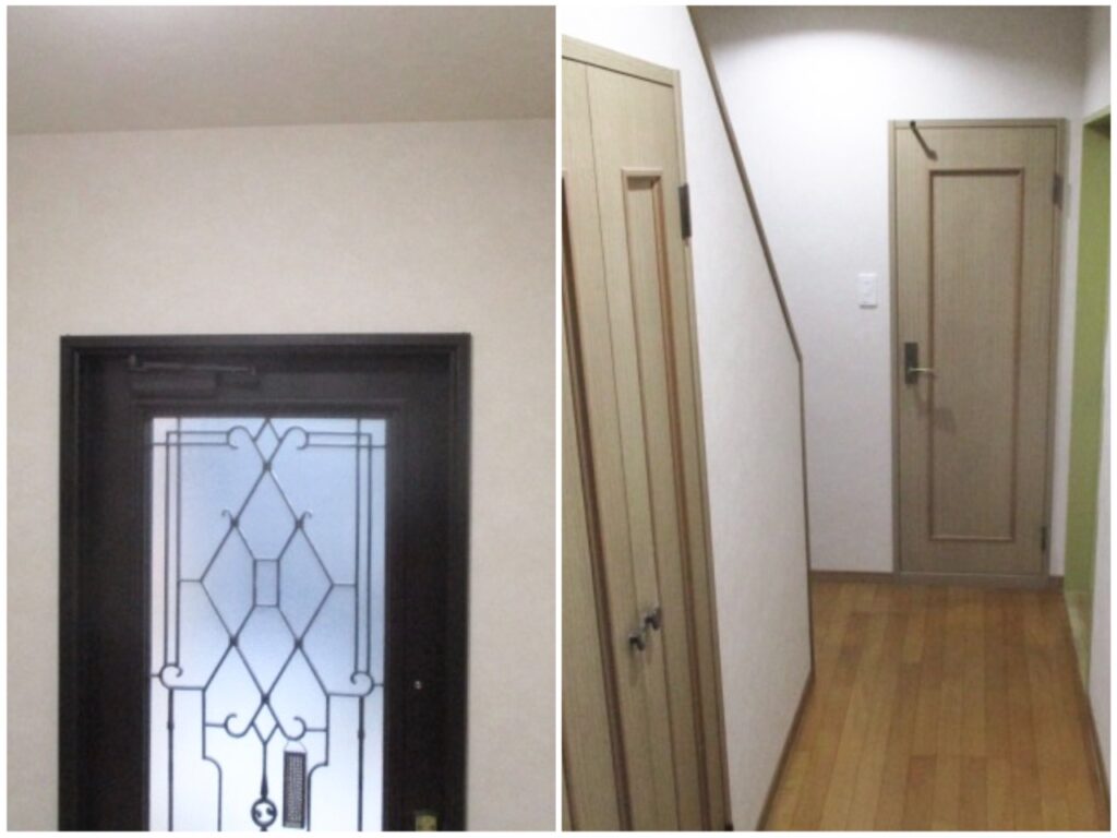 壁・天井のクロス貼替え→シーリング・ダウンライトLED照明取替え→ホールと廊下の床(フローリング)はそのまま使用しました。