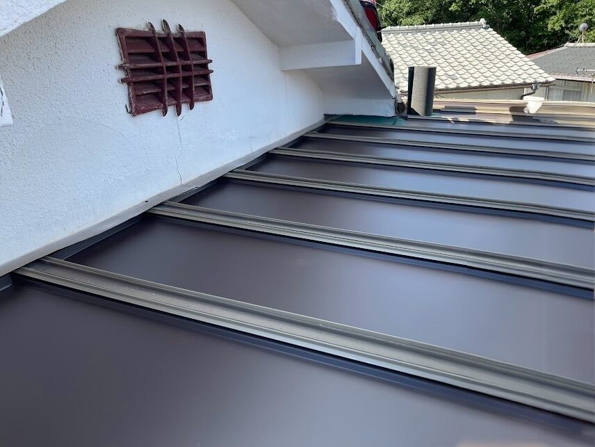 鋼板縦葺きに葺き替えて、見た目もスッキリ。防水性・耐久性も安心の屋根に。
