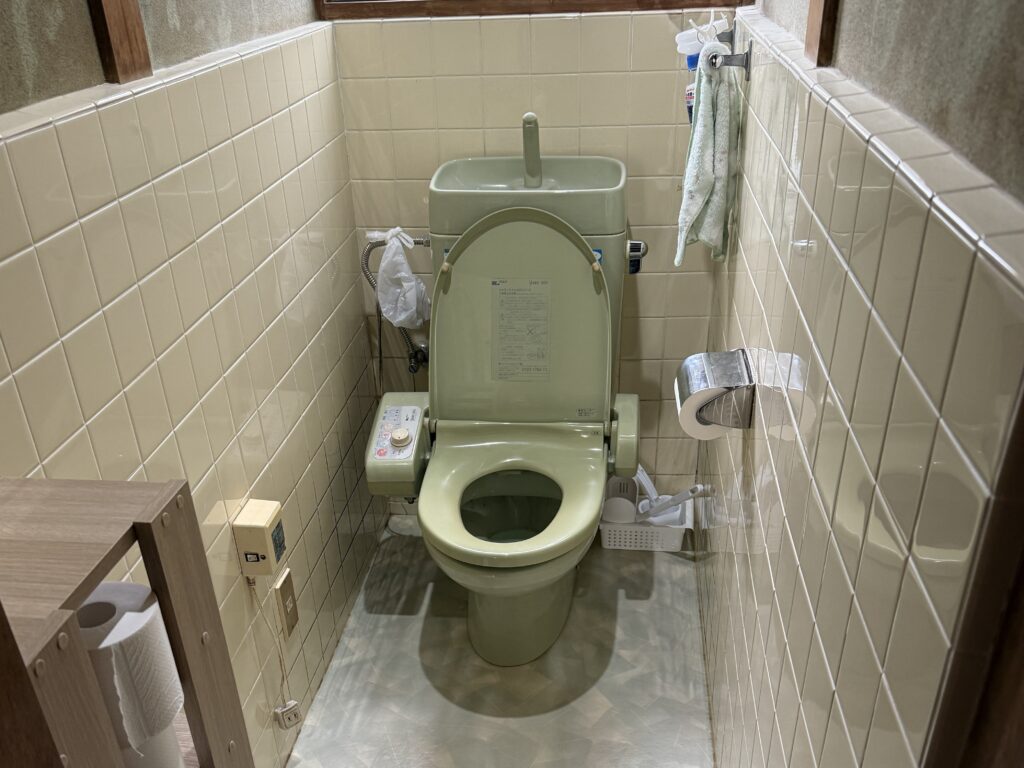 経年で床や壁の汚れが気になり、少し暗い印象のトイレ空間でした。