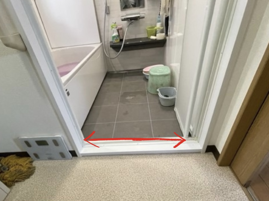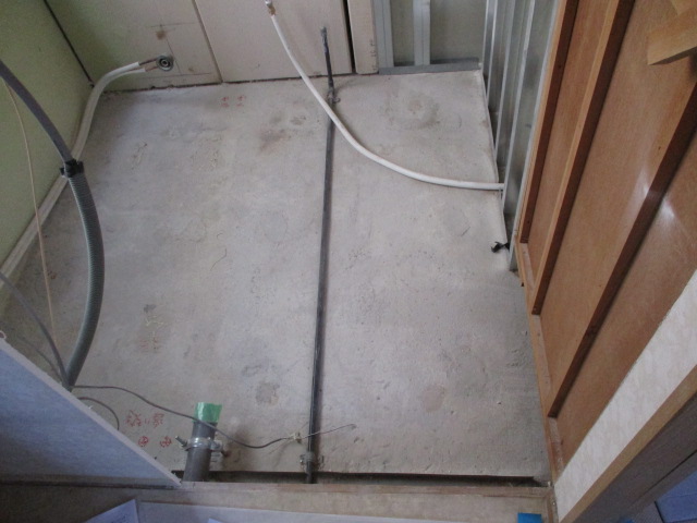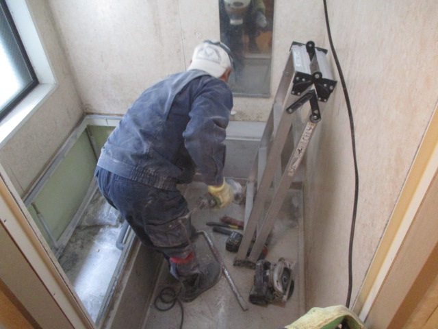 • 既存浴室解体  既存浴槽、壁、床など撤去処分します。既存出入口折れ戸撤去、折れ戸側の壁も一部撤去します。