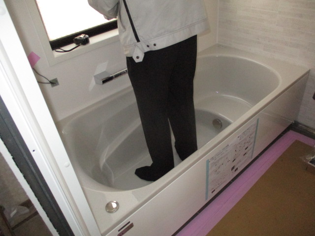 • 浴室設置完了  半身浴が楽しめて、節水効果もあるベンチタイプ(腰掛けスペース)浴槽を選ばれました。