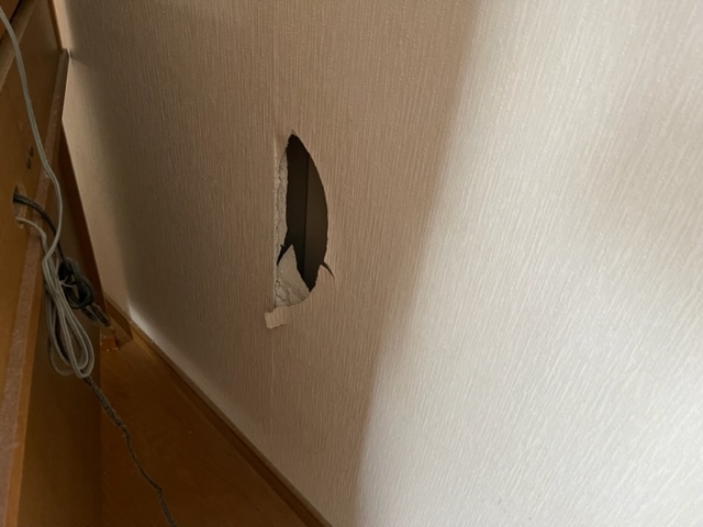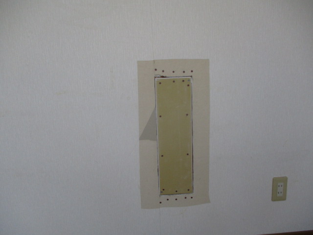 • 穴部分を少し大きめに切り取り、下地補修材を設置しました。