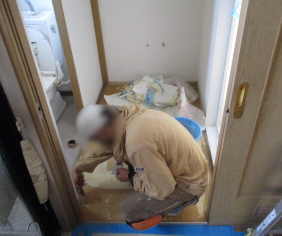 • 巾木・廻り縁撤去処分。床材CF貼替え。