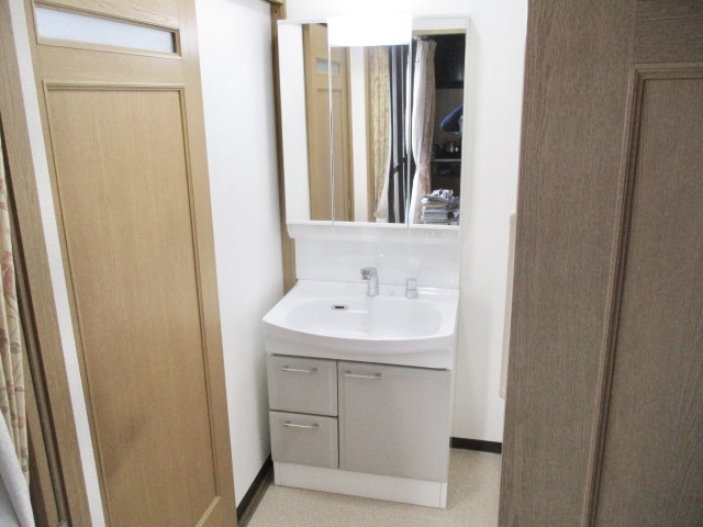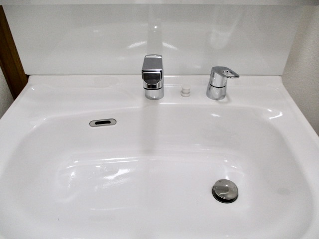 仕上げにクロスを貼りました。洗面化粧台は、W750タカラスタンダード 『オンディーヌ』を設置しました。