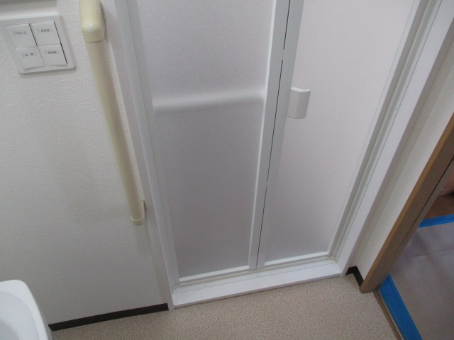 床材CF貼替え→壁・天井クロス貼替え→出入口引き戸修理→広告特別トイレ商品、TOTO 『ウォシュレット一体型ZJ1 』設置。 補助金の対象商品です。