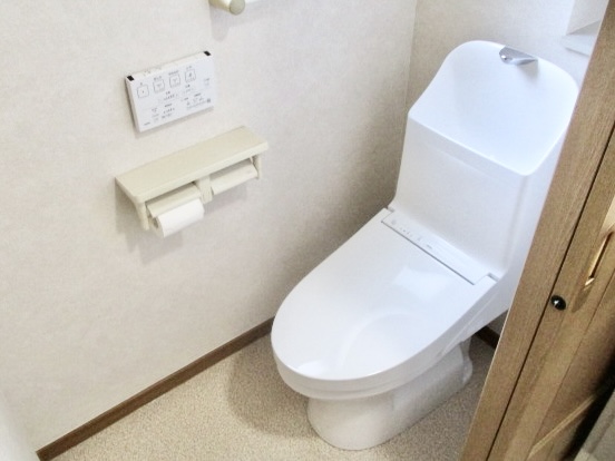 床材、壁・天井クロスは貼替えず、そのまま使用→広告特別トイレ商品、TOTO 『ウォシュレット一体型ZJ1 』設置。 補助金の対象商品です。
