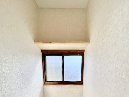 窓上部にはストック収納用の棚を新設。限られたスペースでも無駄なく活用し、生活感を抑えたすっきりとした空間になりました。